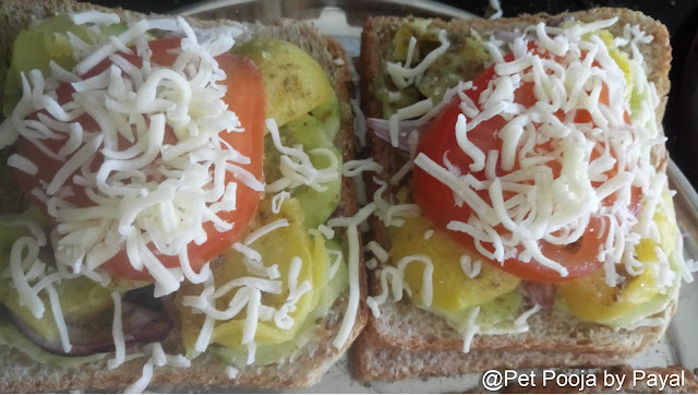 - Arrange small portion of all vegetables on one slice (you can add or remove vegetables as per your taste)